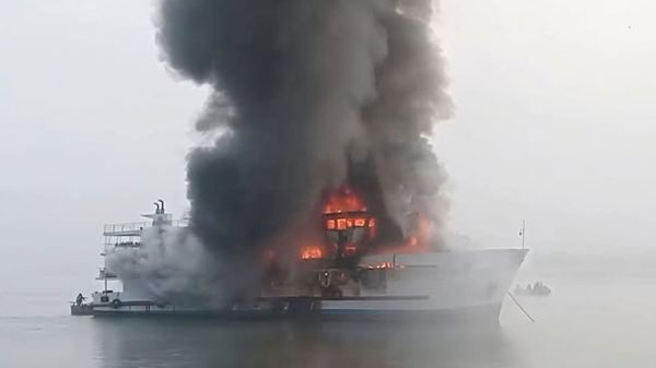 কক্সবাজার প্রতিনিধি : কক্সবাজারের নুনিয়াছড়ায় সেন্টমার্টিনগামী ‘দ্যা আটলান্টিক ক্রুজ’ জাহাজে আগুন লেগে জাহাজটি সম্পূর্ণ ক্ষতিগ্রস্ত হয়েছে। কক্সবাজারের নুনিয়াছড়ায় বাংলাদেশ অভ্যন্তরীণ নৌ-পরিবহন কর্তৃপক্ষের (বিআইডব্লিউটিএ) ঘাট-সংলগ্ন বাঁকখালী নদীতে ‘দ্যা আটলান্টিক ক্রুজ’ নামে
